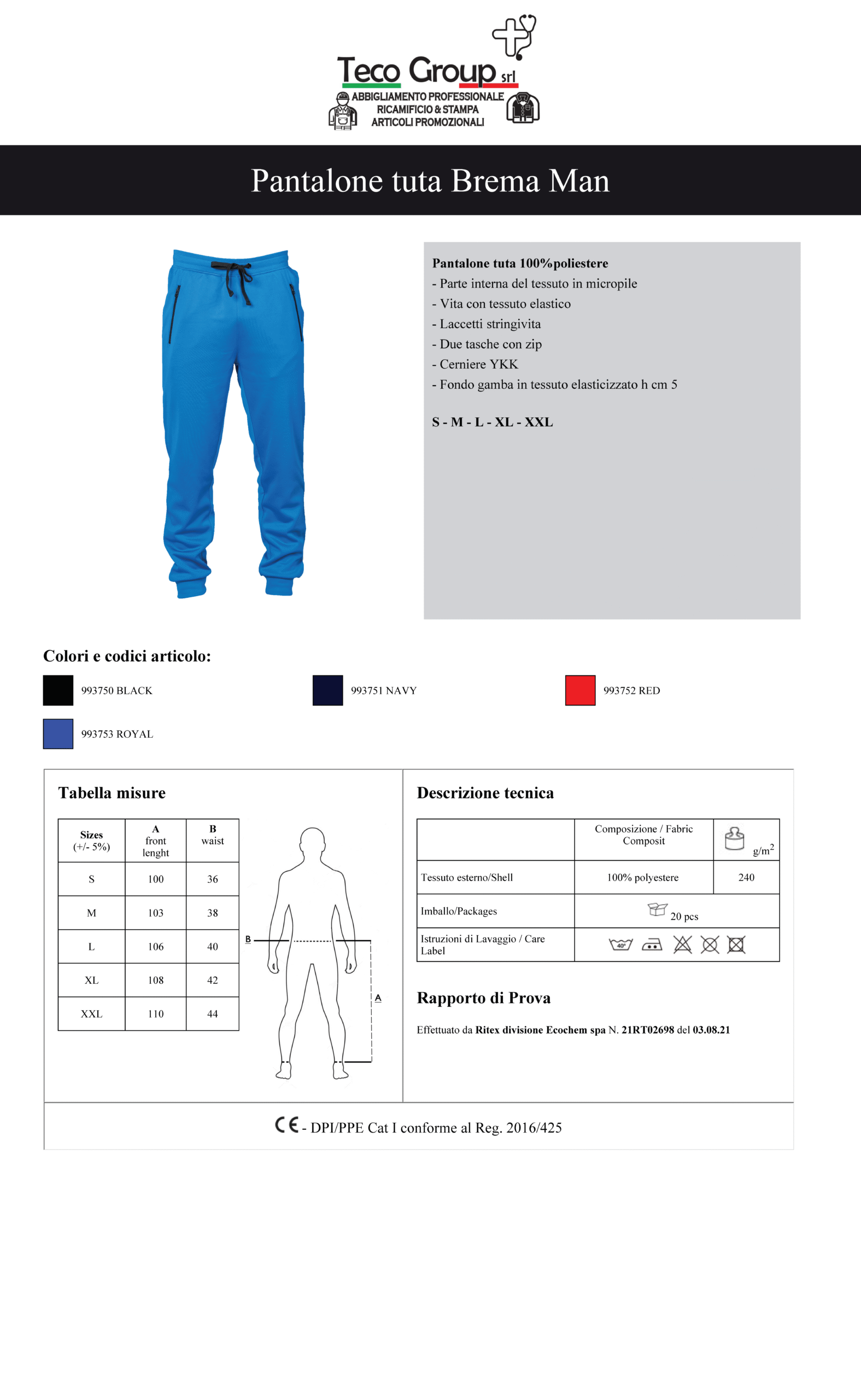 Recensisci per primo “Pantalone sportivo BREMA in tessuto tecnico”